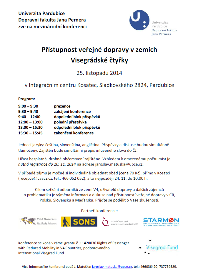 nutná registrace do 20. 11. 2014 na adrese jaroslav.matuska@upce.cz.