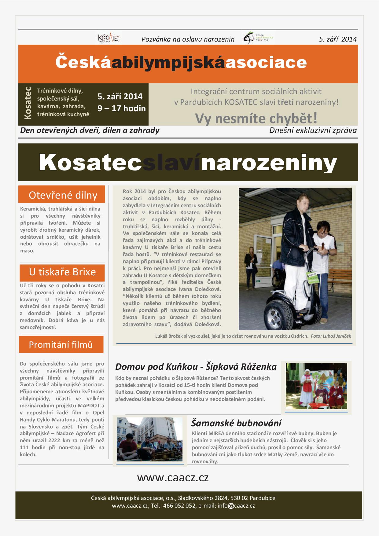 5. 9. – Kosatec slaví 3. narozeniny