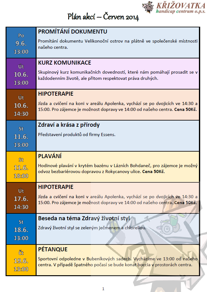 Plán akcí – červen 2014 – KŘIŽOVATKA handicap centrum o.p.s.