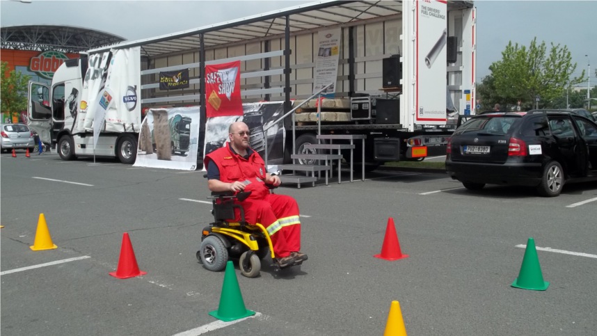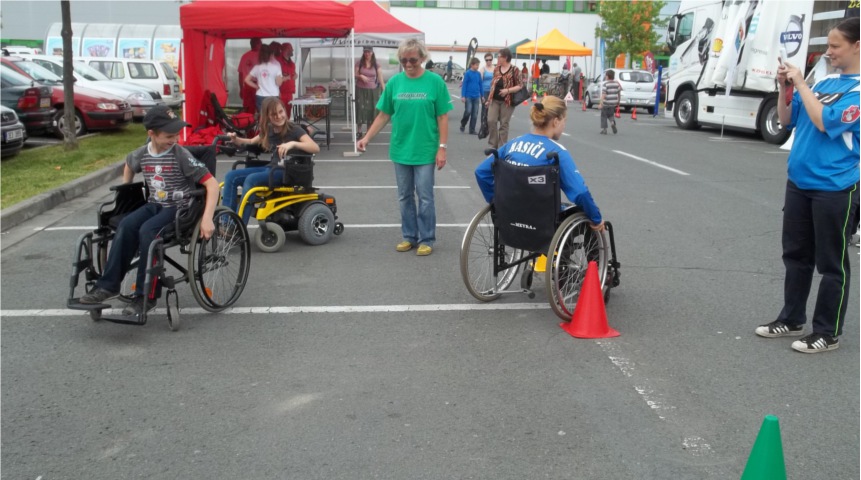 KŘIŽOVATKA handicap centrum o. p. s. umožnila lidem, aby si vyzkoušeli jízdu na mechanickém vozíku včetně zdolávání simulovaných terénních bariér anebo se projeli na elektrickém vozíku a poznali tak, že jeho řízení není zase tak jednoduché. Velký zájem byl o prohlídku speciálně upraveného automobilu pro vozíčkáře.