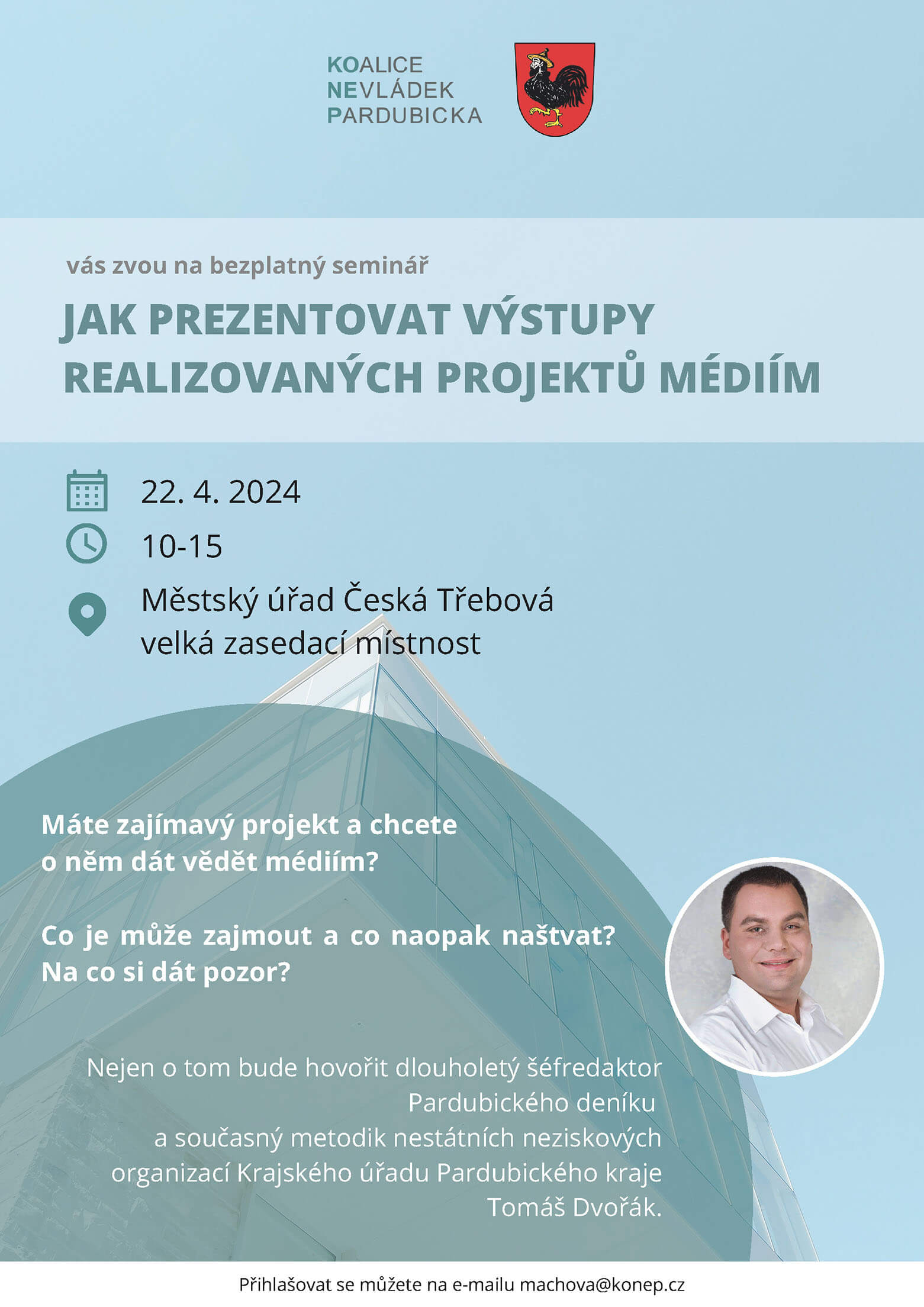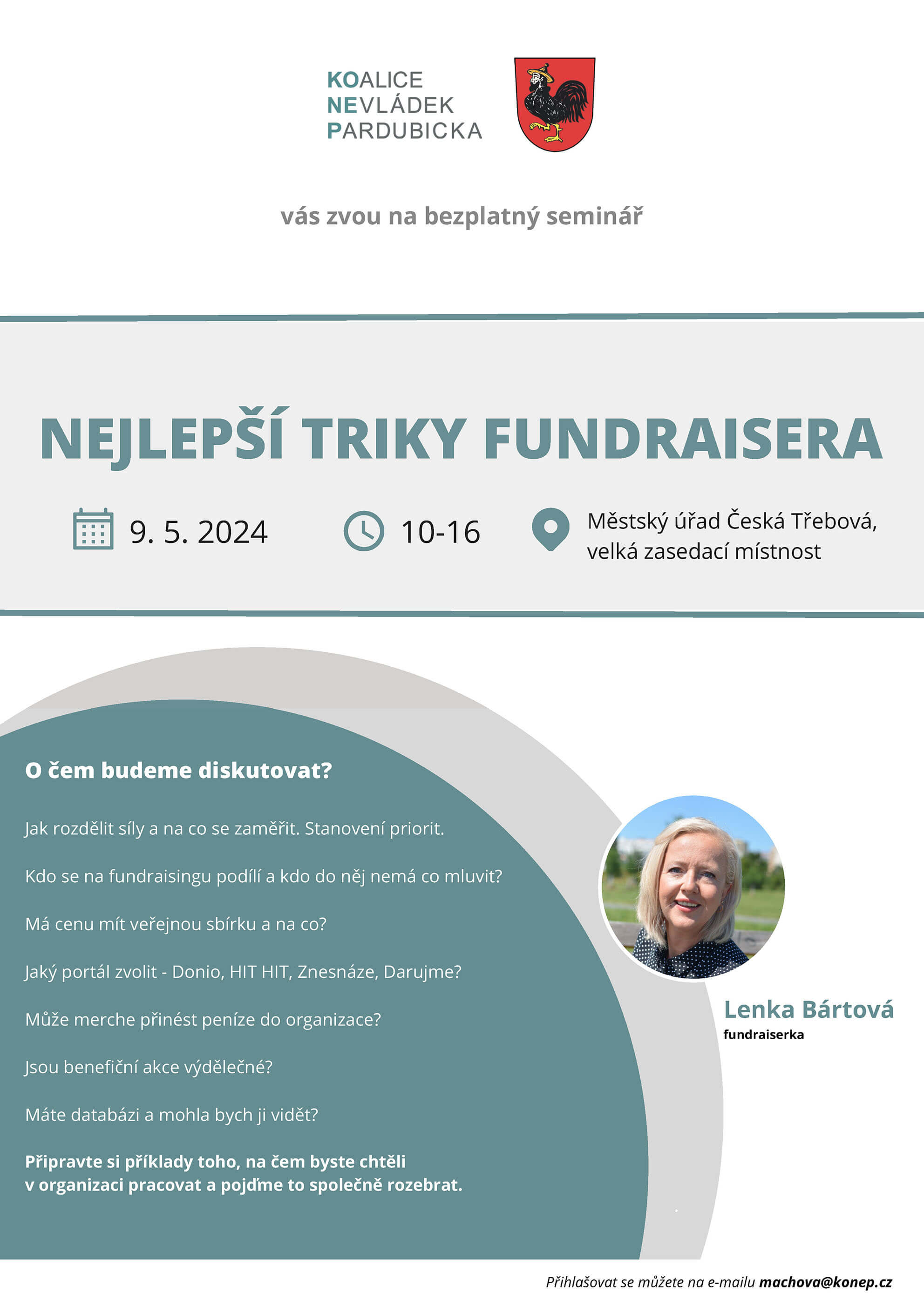 Všechny tři kurzy se uskuteční ve velké zasedací místnosti Městského úřadu Česká Třebová. Přihlásit se na ně je možné na e-mailu machova@konep.cz.